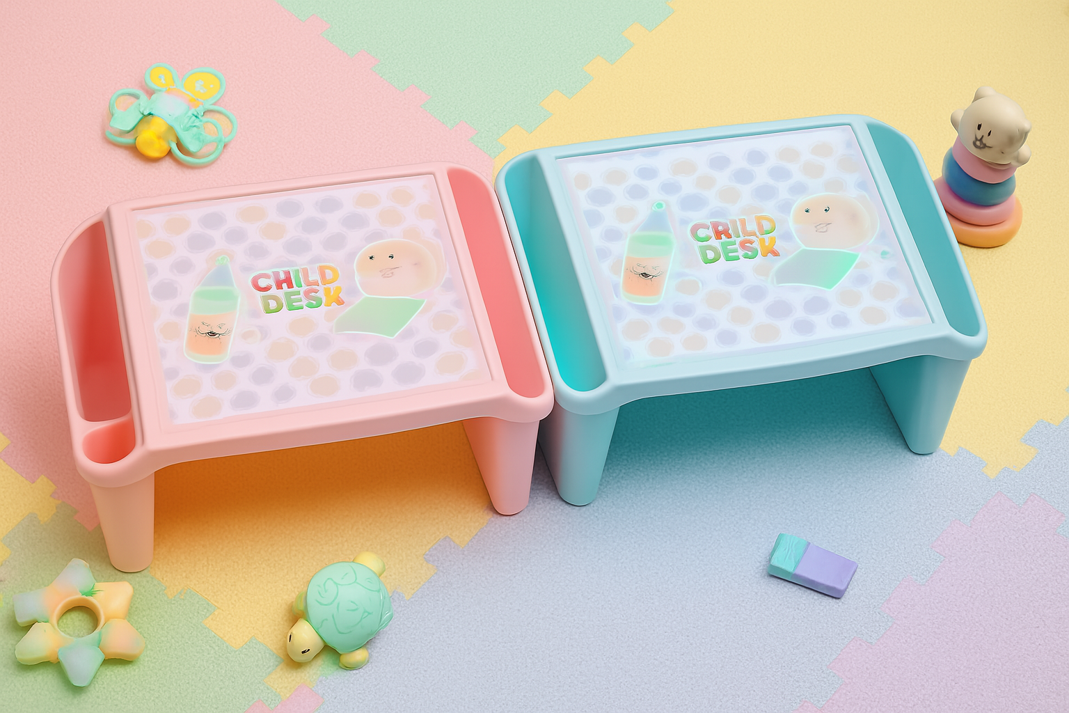 Kids Portable Study Table – Multifunctional Plastic Desk with Side Storage (56x40x30 cm) (Random Color)
