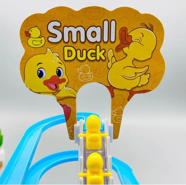 uck Coaster: The toy set comes with blinking LED lights, easy to emble. The cute little yellow duck can climb stairs and rails. This toy contains fun tracks and upbeat music (with an on/off on).